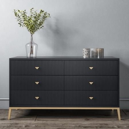 Home ➺ Furniture ➺ Bedroom Furniture ➺ Chest of Drawers ➺ Dark Grey Wide Chest of 6 Drawers with Gold Legs