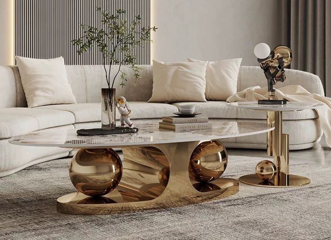 Slate Marble Top + Stainless Steel Base Center Table