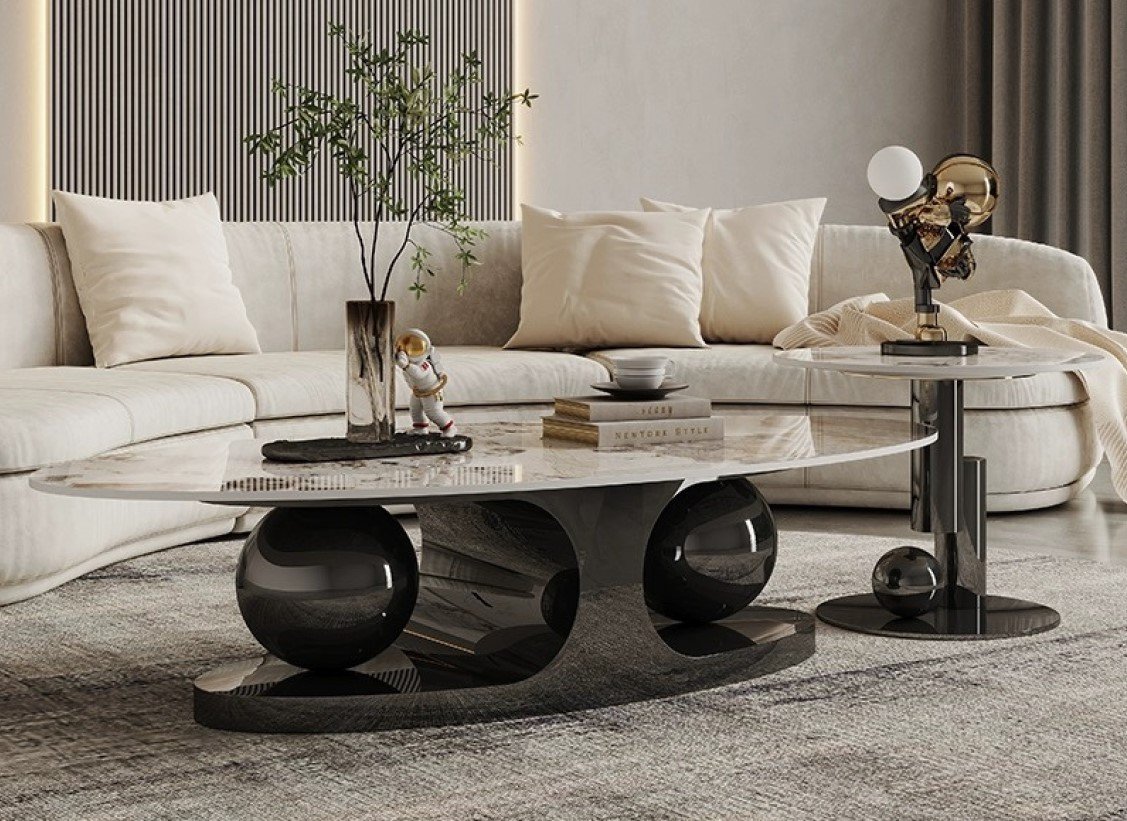 Slate Marble Top + Stainless Steel Base Center Table